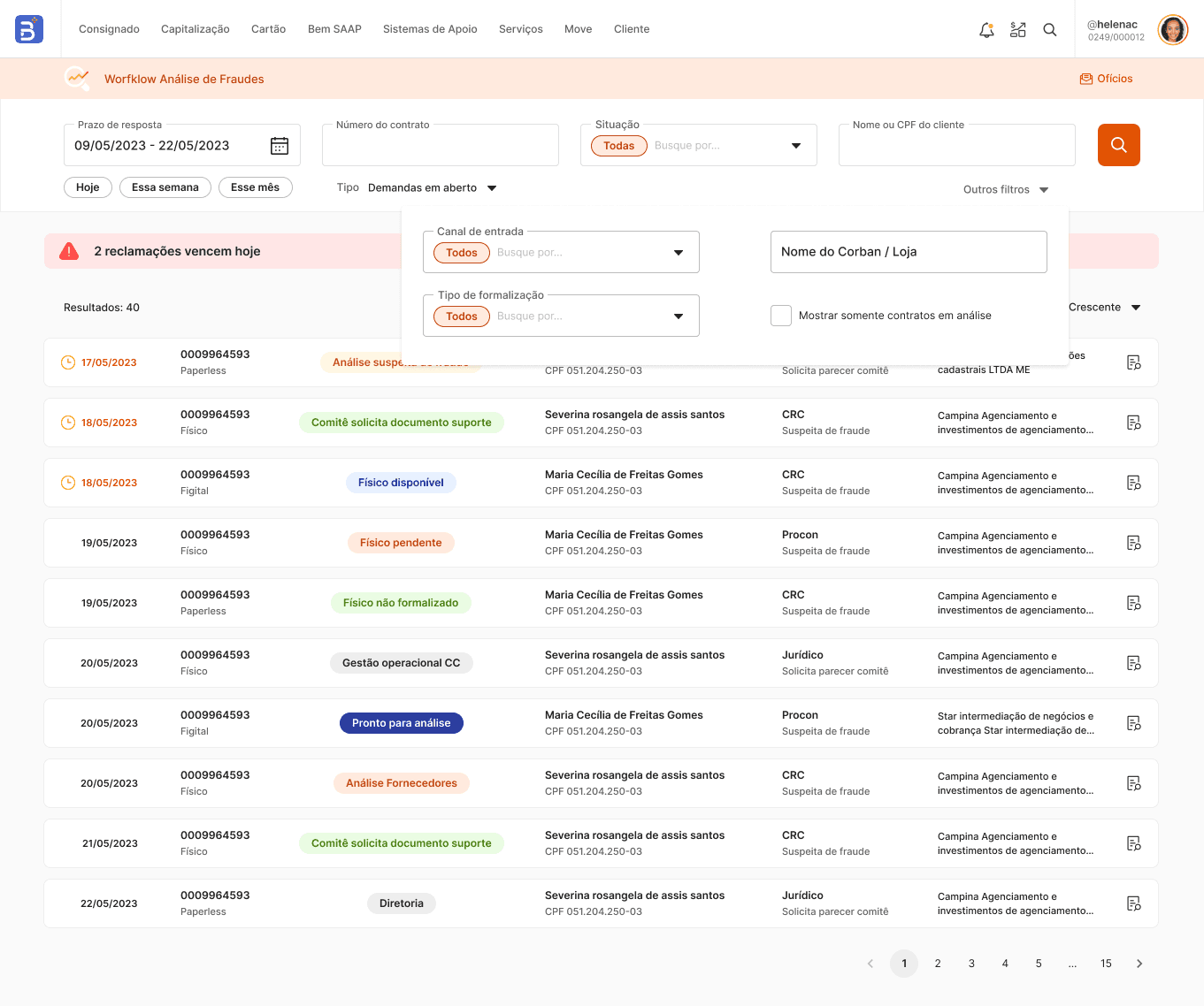 The contracts table also got a new look, making it easier to identify contracts with closer expiration dates, distinguish contract situations by colors, and identify which contracts are already being analyzed.