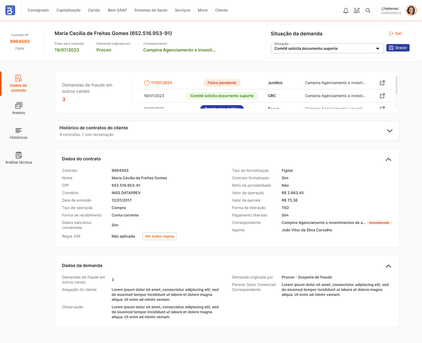 In addition to the completely new look, the page components respect the order in which they are used by the analysts, and facilitate the search for external information, while at the same time presenting greater resilience to errors.